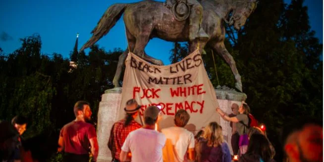For instance, in Charlottesville, local BLM activists have chanted and draped the Confederate statue of Robert E. Lee with the slogan: “Fuck white supremacy.” This kind of “incivility” has raised hackles among some as potentially alienating supporters. The argument is that the civil rights movement was more dignified. In a Washington Post piece, veteran civil rights movement activist Barbara Reynolds wrote about why she found it difficult to fully support BLM: “The demonstrations are peppered with hate speech, profanity, and guys with saggy pants that show their underwear” even as she acknowledges that “This ain’t your grandparents’ civil rights movement.”